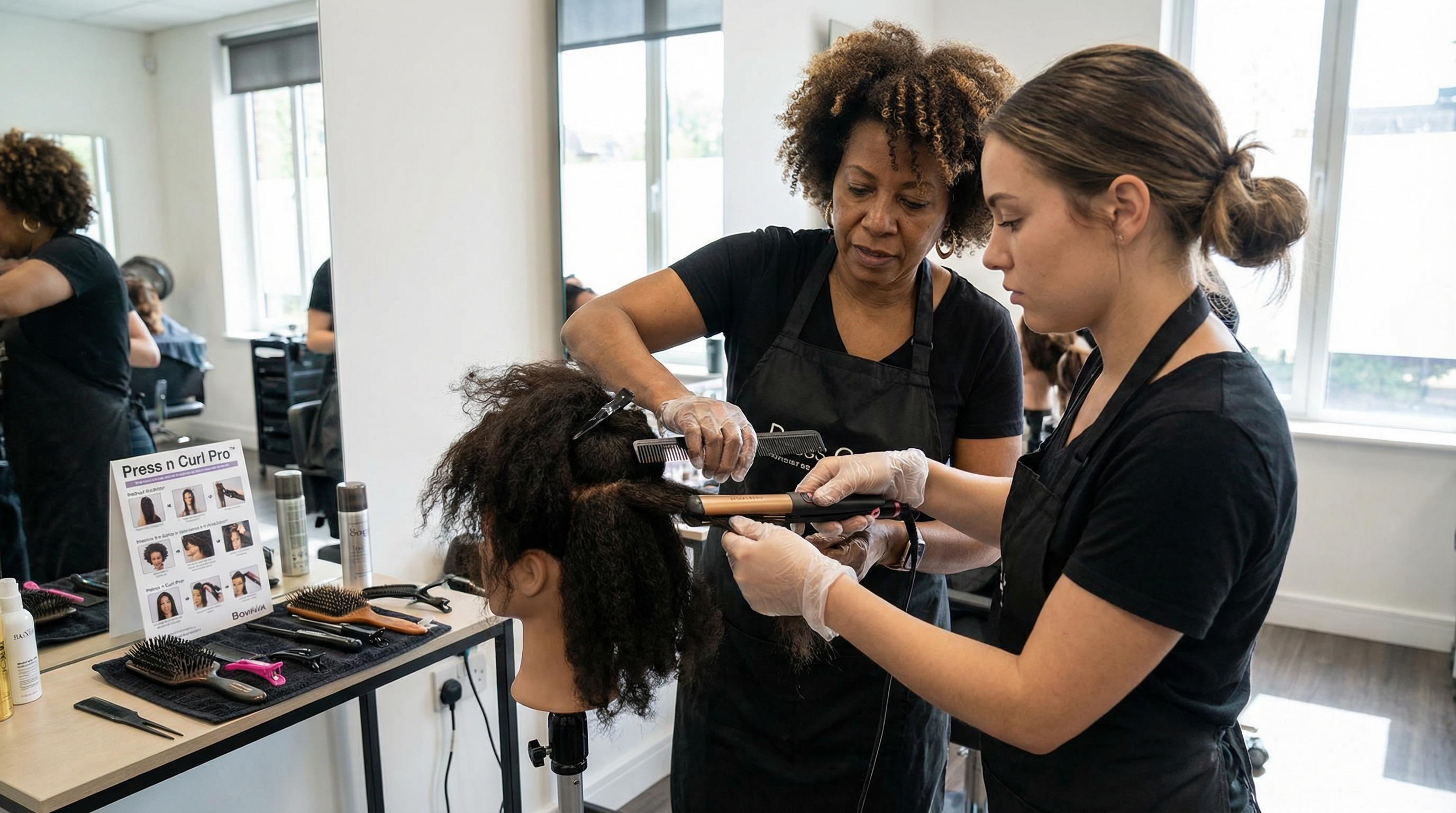 Learn the press n curl techniques focused on healthy hair, precision, and consistent results behind the chair.